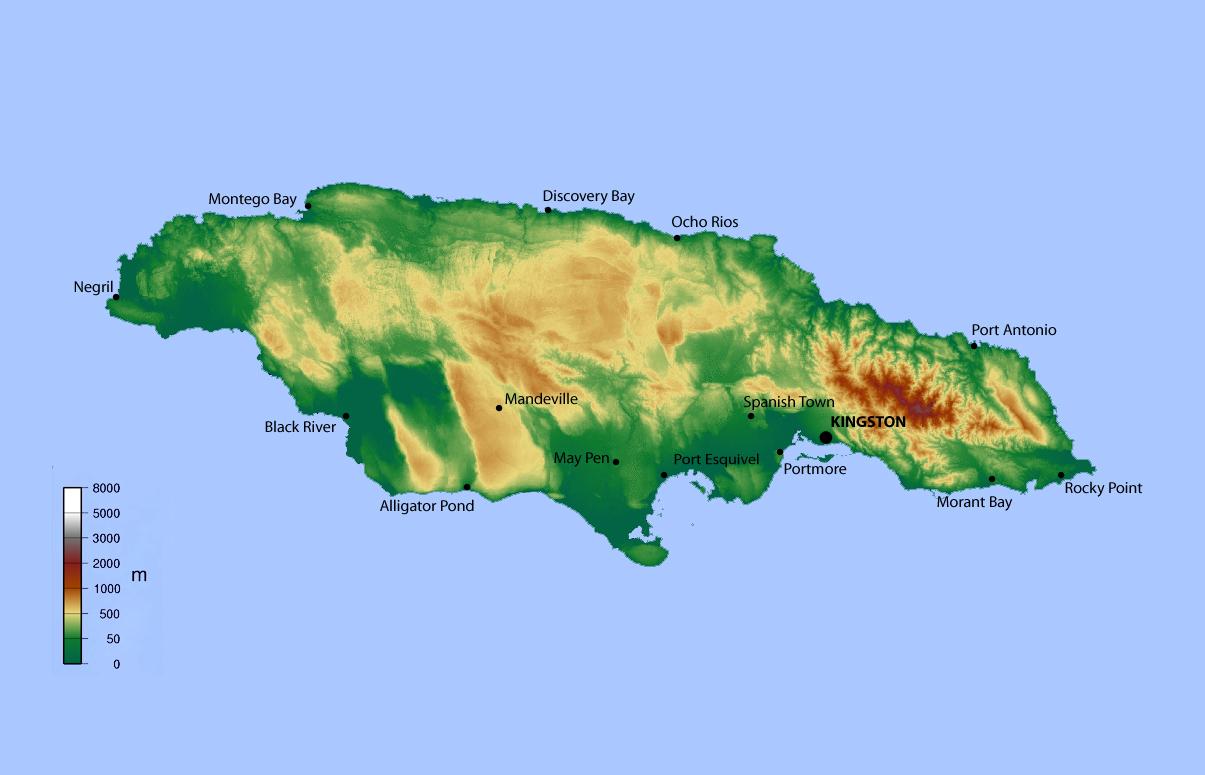 牙买加的高程地图